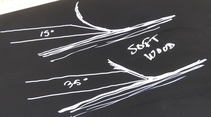 Are you sensing a trend here? Shallower bevel angles work well for softwood because the fibers are more flexible and don't wear on the steel as much. Steeper bevels work well for harder woods because they better roll back the fibers and stand up to greater abuse.