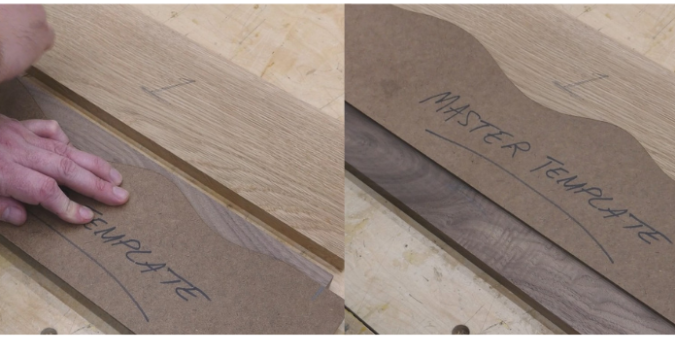 Tip: I make my templates wider than the actual workpiece. By leaving an extra inch hanging off each end, you allow the router bit to enter and exit the cut smoothly.