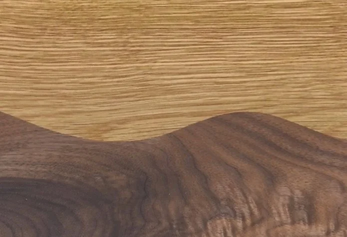 Complimentary curves are two curvy lines that mate together perfectly. It’s a fantastic way to use contrasting species of wood—or different stain and dye colors—to create unique effects.