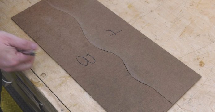 Lay out your curvy edge on some template material and cut it out. You have room for error on this first master template, so concentrate on cutting smoothly—even if you have to drift away from your line a bit. Take your time to sand away any bumps or flat spots after using the band saw. This is really important because the quality of your template determines the quality of your workpiece.