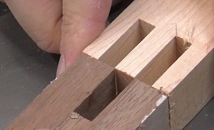 I’ll start with the double-tenoned piece. To avoid confusion, we’ll call this piece (made from walnut in my example) the stile.