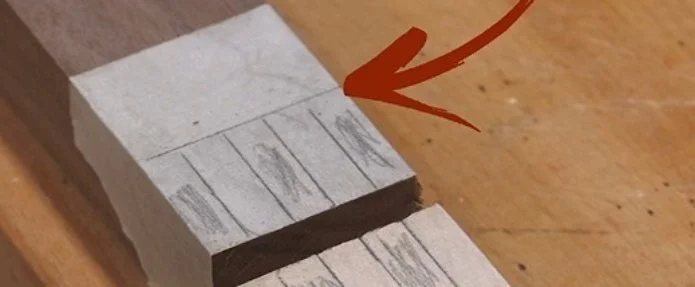 I begin by laying out my joint on the ends of the workpiece. Sometimes I use tape so I can see my lines better, especially on darker wood. I also like to color in the waste areas so I’m not confused while cutting. These fingers won’t go back on if you cut one off at the table saw.