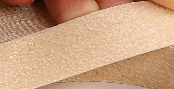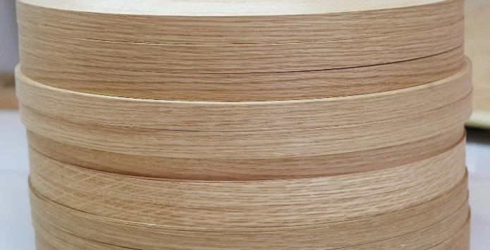 This material comes pre-glued, meaning the back is coated with a dry adhesive that softens with heat. It won’t be as durable as 1/8-inch or 1/4-inch hardwood banding that you cut and glue on yourself, but if applied properly, it will be as durable as the veneer on the plywood itself. That makes it perfectly suited for cabinetry, shelving, and many other projects.