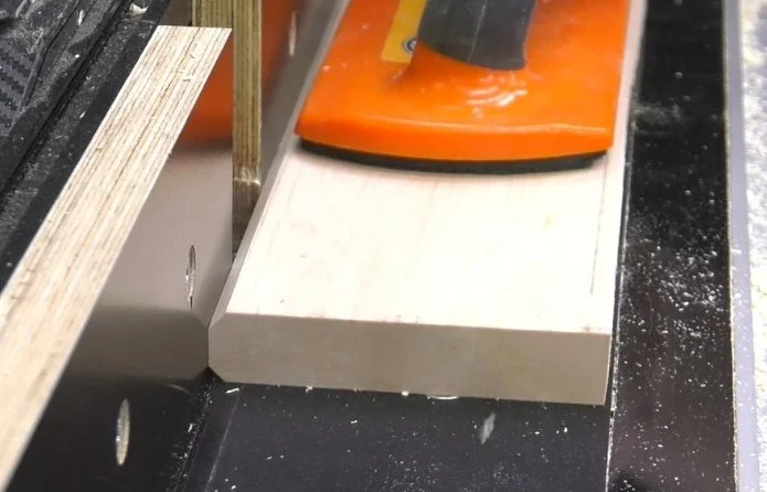 Then run the workpiece through on both faces. After each set of passes, move the fence back, exposing a little more of the bit. This will gradually sharpen the edge until the points meet in the center. I like to end up with a slight flat on the edge because it gives a little room for glue.