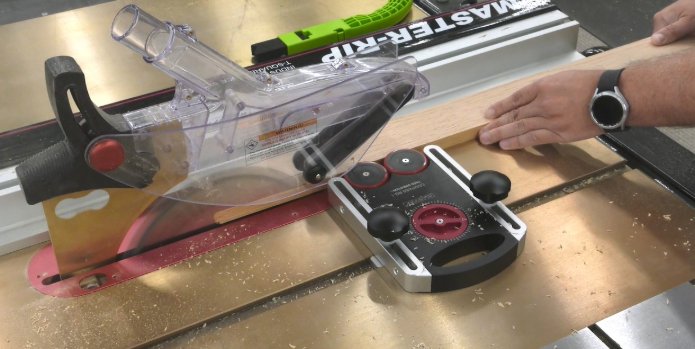 Cutting the first edge couldn’t be simpler. I use a pair of push blocks to apply nice, even pressure both down on the table and against the fence. Do not do this with your fingers alone. If you are machining a really long workpiece, you might set up some featherboards, but in most cases, for this first edge cut, the push blocks are enough.