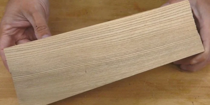 Take a look at a chunk of solid oak. Notice how nice and straight the grain is on this face. That quarter-sawn or rift-sawn appearance is what a lot of folks pay top dollar for. But everything changes as you turn it just 90 degrees. Now we have a much less pleasing flat-sawn grain pattern.