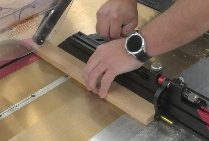 So I started prepping my stock on the table saw by carefully ripping everything to its final width. These straight, 90-degree cuts are perfectly safe when done with the proper safety equipment. A featherboard or a roller-guide system can also help ensure each strip is precisely straight and equal in width.