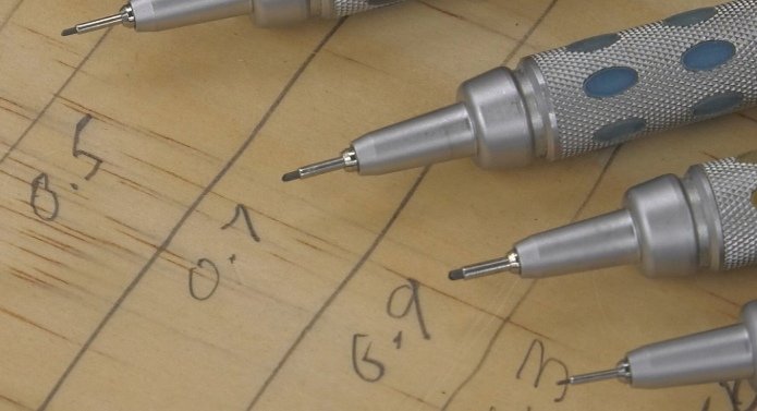 On the other end of the spectrum is 0.3mm. This is a fragile lead—you have to be careful with it—but it’s ultra precise. So precise, in fact, that I’ll use it for fine joinery such as dovetails.