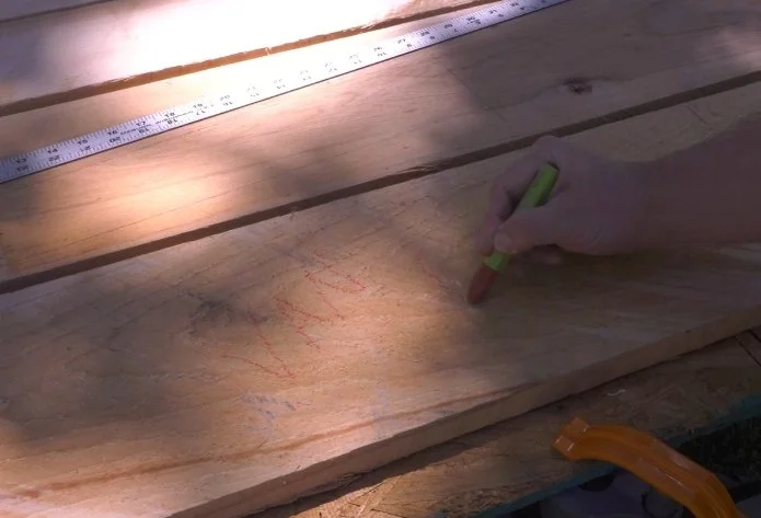 I used to use a lumber crayon, but a few years back I switched to a thick lead holder like the one below. It’s not only very durable, but also a little more precise than the crayon, so I can write legibly on smaller pieces.