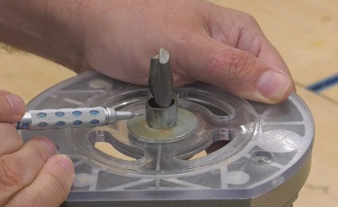A bushing is a collar that attaches to the router’s base plate, surrounding the router bit. Bushings come in different sizes and are used to guide the cut when working with certain jigs and templates.
