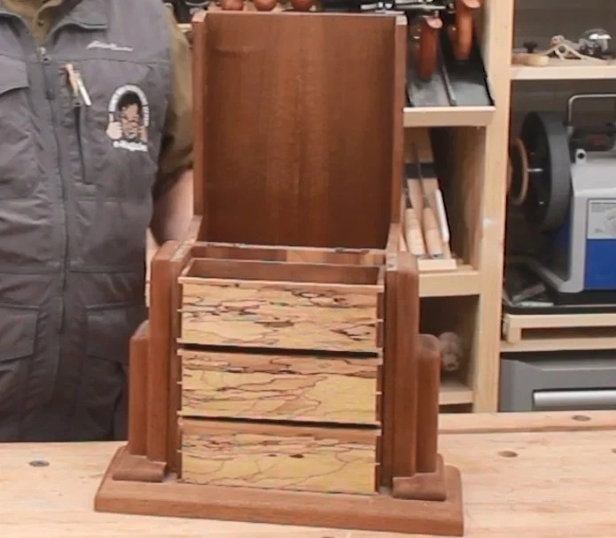 It can take a couple of years to achieve a good level of spalting, and it’s easy to go too far. Remember: spalted maple is partially rotten. Some areas around the black lines can become spongy or “punky.” This makes joinery difficult—cutting the dovetails for the drawers was a real challenge due to the soft, crumbling fibers. One way to handle this is by fortifying the wood with diluted glue or other hardeners.