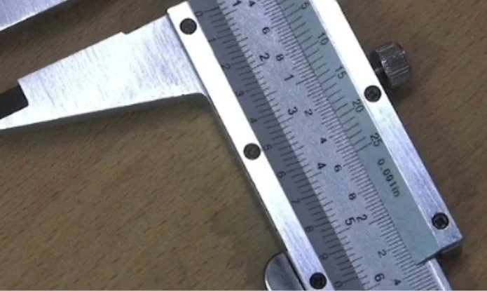 Think of it like this: those 25 marks on the vernier scale are “squeezed” into the space of one of the smallest marks on the main scale. Each mark on the vernier scale equals one thousandth of an inch (0.001").