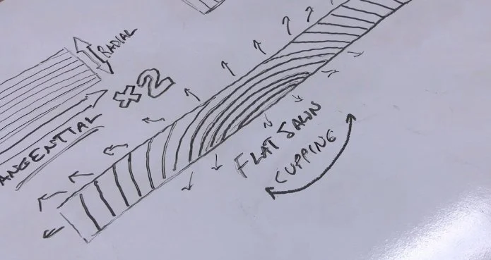 If one side of a board is significantly damper than the other, the board will cup toward the dry side. But what’s most common in furniture is for both sides of a board to absorb moisture evenly from the air. The result? A cupping away from the center of the tree—or opposite the curve of the growth rings.